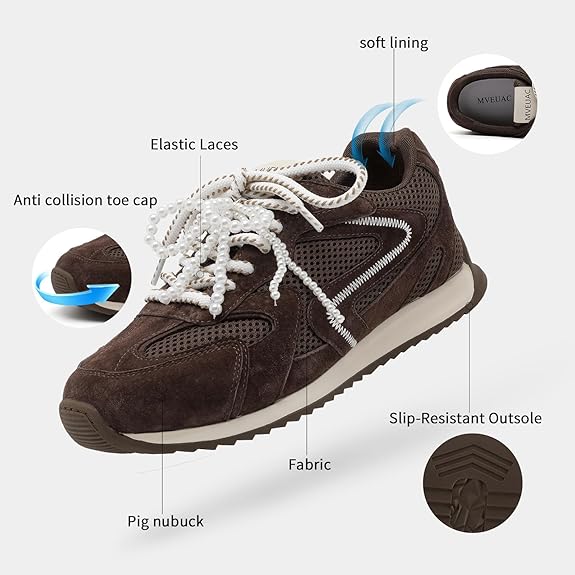 The Women's Casual Sneakers' upper combines genuine leather, Durable and sturdy, suitable for all-day wear. Featuring a shoelace design and pearl design, Designed for women who pursue both style and practicality, it is the ideal choice for everyday wear. These women's casual fashion sneakers feature a soft lining and Memory Foam Insoles and ankle protection, ideal for all-day wear,Significantly reduces the risk of slipping. This women's casual shoe is designed with strategically placed perforations that not only add a stylish touch but also enhance breathability.
