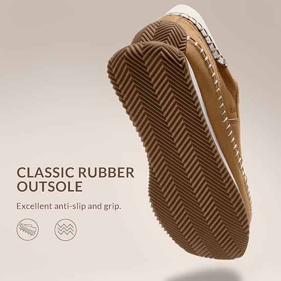 Premium PU & Suede Upper: Crafted with a stylish blend of smooth PU and soft microsuede, our sneakers feature contrast stitching and retro-inspired detailing for a timeless look that elevates everyday wear—perfect for women who love fashion with a vintage twist. All-Day Comfort Insole: Equipped with a plush, cushioned footbed that molds gently to your feet, these sneakers deliver cloud-like comfort from morning errands to evening strolls—ideal for long walks, travel days, or hours on your feet without fatigue. Anti-slip rubber outsole: The stylish and avant-garde heel design and the wear-resistant and anti-slip rubber outsole provide reliable grip on sidewalks, subway tiles and city streets, allowing you to walk confidently and steadily in any weather. Effortlessly Versatile Style: Designed in neutral, go-with-everything hues, these sneakers seamlessly transition from brunch dates to weekend getaways. Dress them up with jeans or down with a summer dress—they’re your new wardrobe staple. Thoughtful Everyday Sneakers: Lightweight, breathable, and built for real life, these shoes combine retro charm with modern comfort. Whether you're exploring a new city or running daily errands, they’re the perfect companion for women who walk with purpose and style.