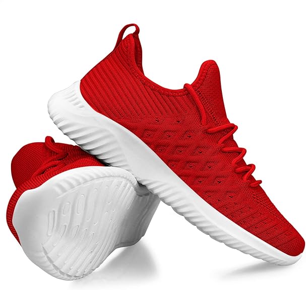 The women sneaker upper is made of knitted mesh material featuring lightweight and breathable. Ventilation ports add breathability and help feet cool and fresh. Lacing and Tongue: The shoe lacing is engineered to give extra stability. The long shoe tongue design is easy to take on and off, while adds a safety, energetic feel. Lightweight and Comfy Liner: Removable and soft insoles support the feet arches and it doesn't put too much pressure on your feet. Durable and Soft Outsole: The slip resistant EVA outsole made of stretchable MD material can be bent freely. A soft, comfortable elastane heel allows for natural movement of the feet.